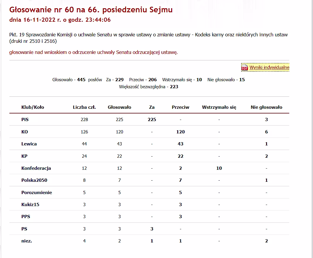 Konfiskata. Za odrzuceniem senackiego sprzeciwu głosowało 229 posłów, 206 było przeciwko, a 10 wstrzymało się od głosu. Teraz ustawa trafi po podpisu prezydenta.